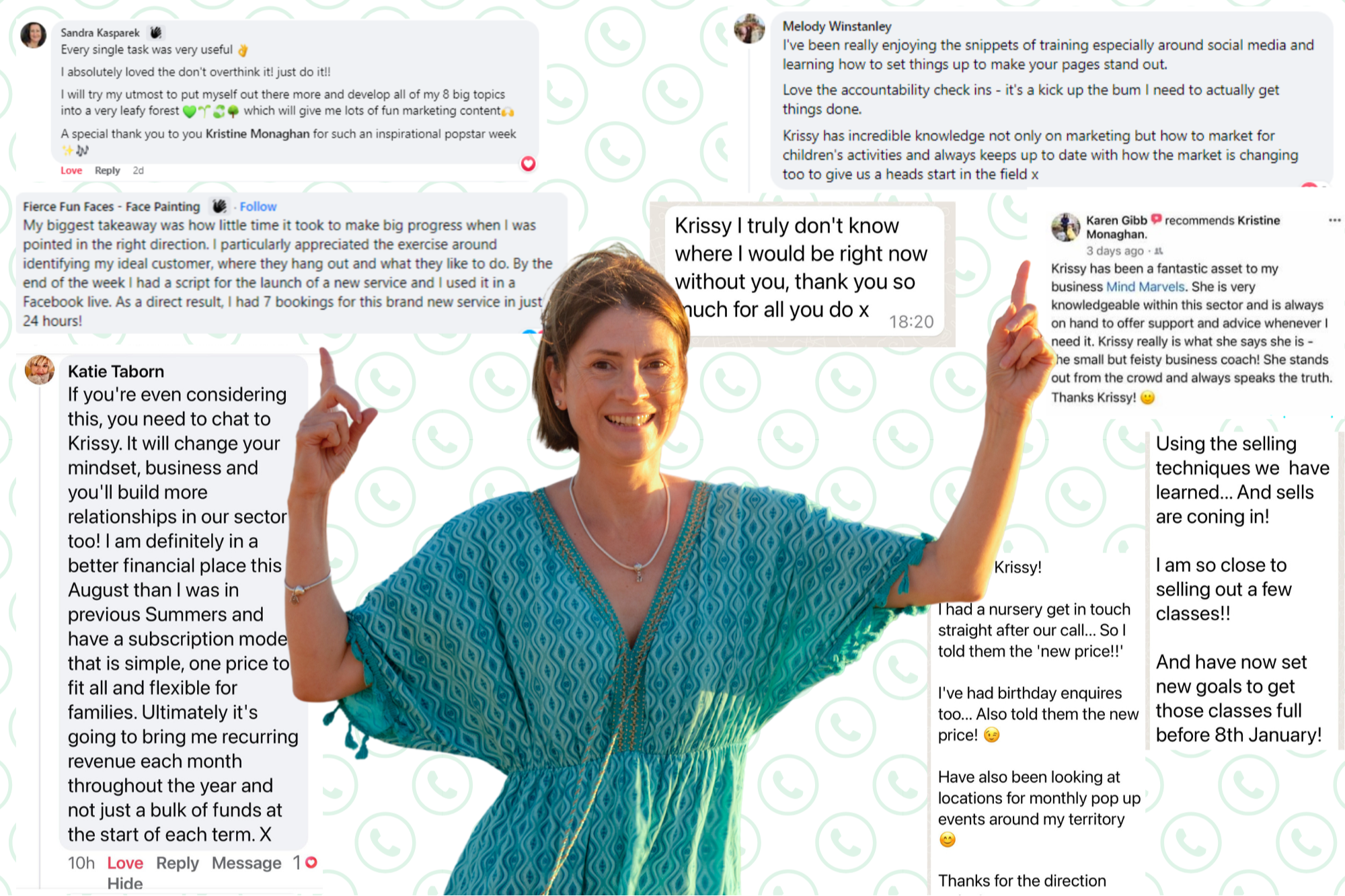 ✓ The chance to work with award-winning business coach Krissy FOR FREE for a whole week, and get her eyeballs on your business.